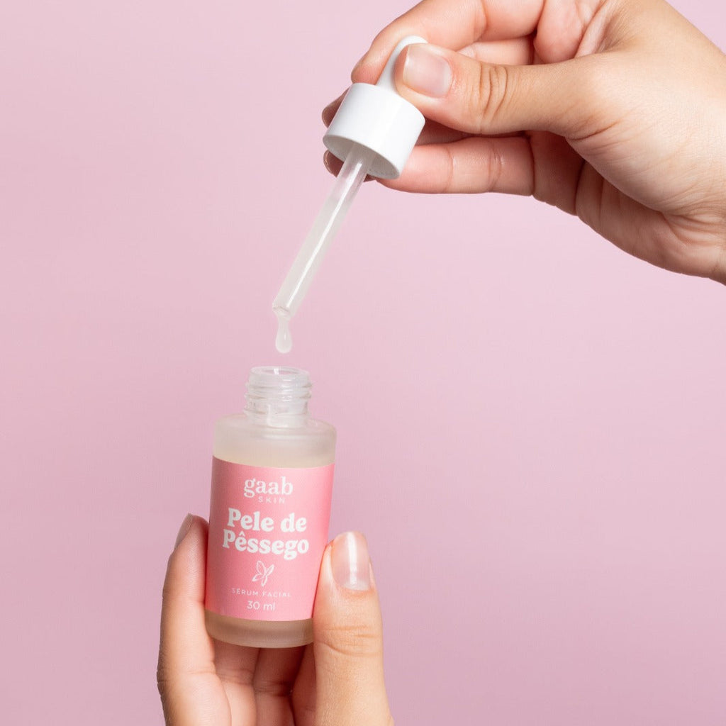 Pele de Pêssego é um sérum facial desenvolvido com alta concentração de ingredientes ativos, que contribuem para a firmeza, elasticidade e aparência geral da pele. Deixa sua pele hidratada, radiante e iluminada, graças a combinação de compostos que fazem toda diferença: ácido hialurônico, colágeno vegetal e vitamina E.