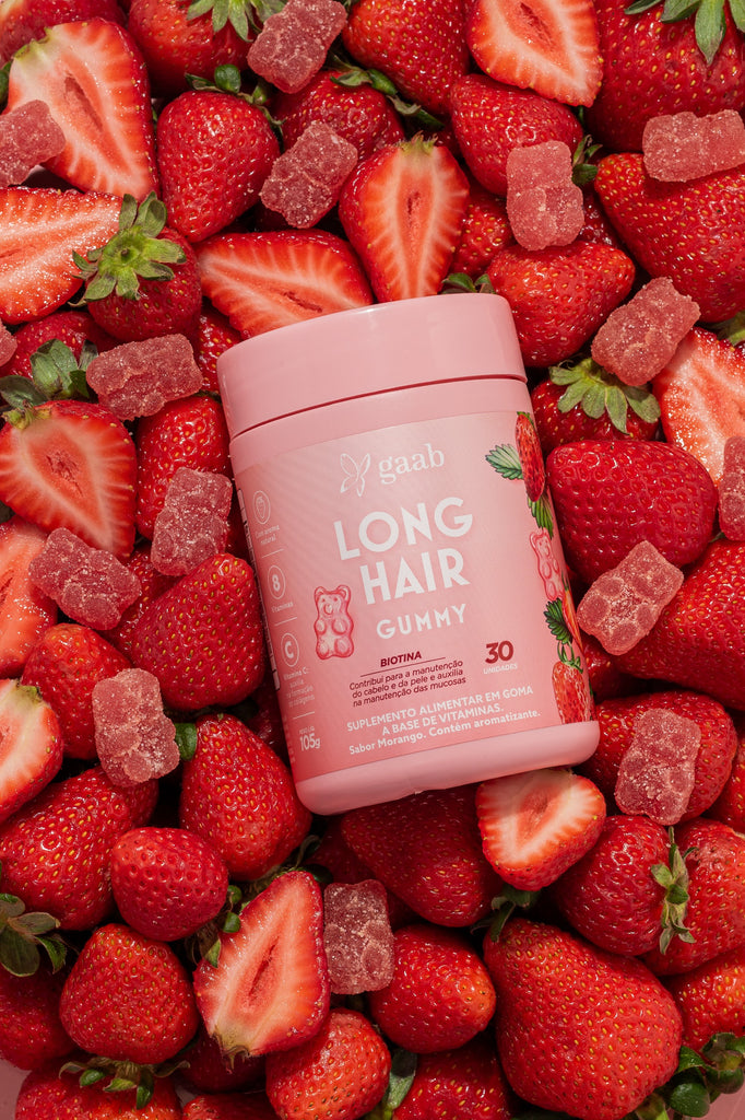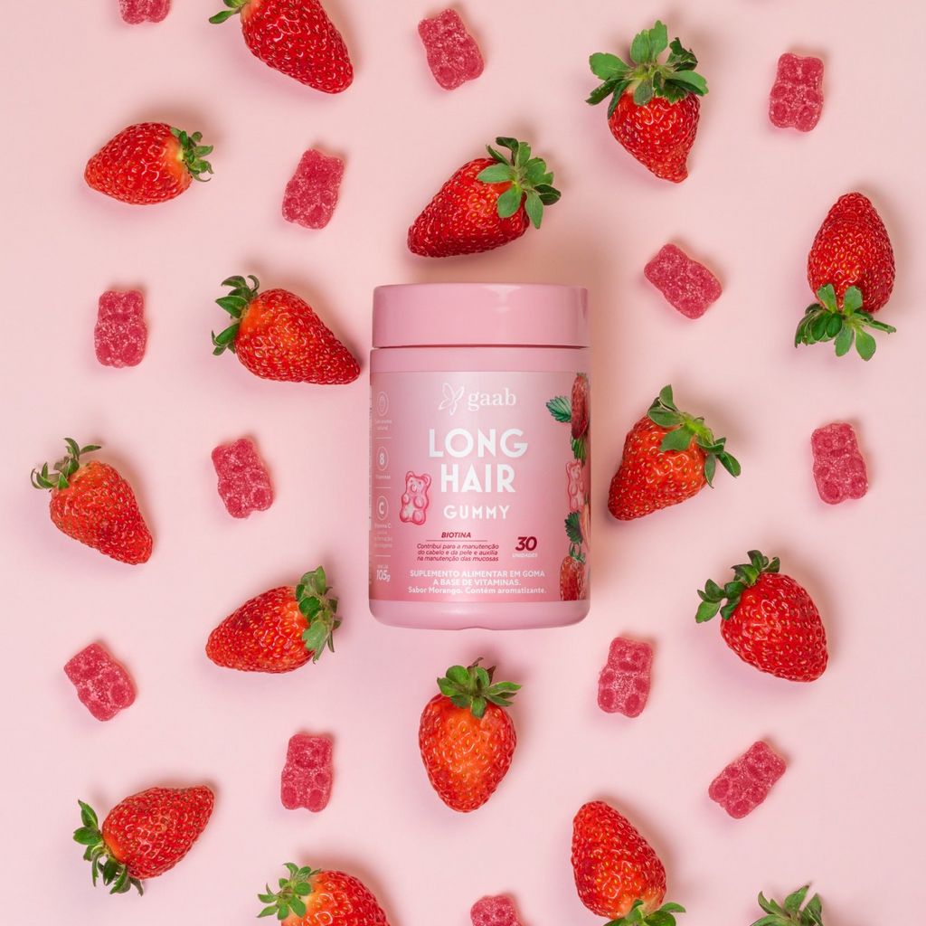 Long Hair Gummy é um suplemento alimentar em formato de goma, com sabor natural de morango, que combina 8 vitaminas selecionadas: Biotina, Vitaminas A, B5, B6, B12, C, D e E. Sua formulação foi desenvolvida para complementar a ingestão diária de nutrientes, podendo ser incluída como parte de uma rotina equilibrada de cuidados pessoais.
