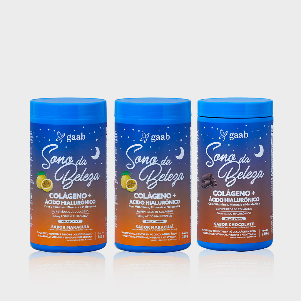 • Peptídeos de colágeno • Cacau em pó • Leite de coco em pó • Hialuronato de Sódio obtido pela fermentação de Streptococcus zoopidemicus (ácido hialurônico), ácido ascórbico (vitamina C) • Bisglicinato de zinco (zinco) • Acetato de dl-alfa-tocoferol (vitamina E) • Acetato de retinol (vitamina A) • Melatonina • Selenito de sódio (selênio) • Aromatizantes idênticos aos naturais • Antiumectante dióxido de silício • Espessante goma xantana • Edulcorantes glicosídeos de esteviol e taumatina •