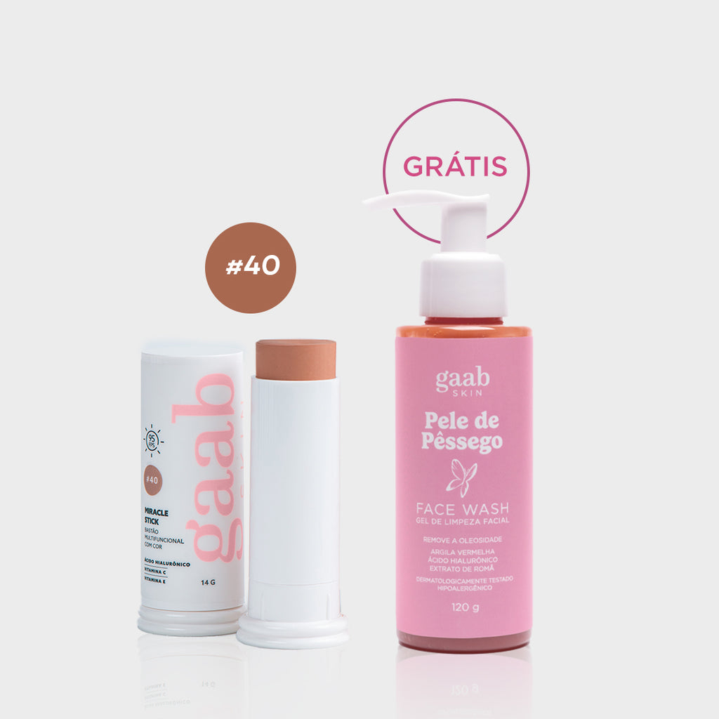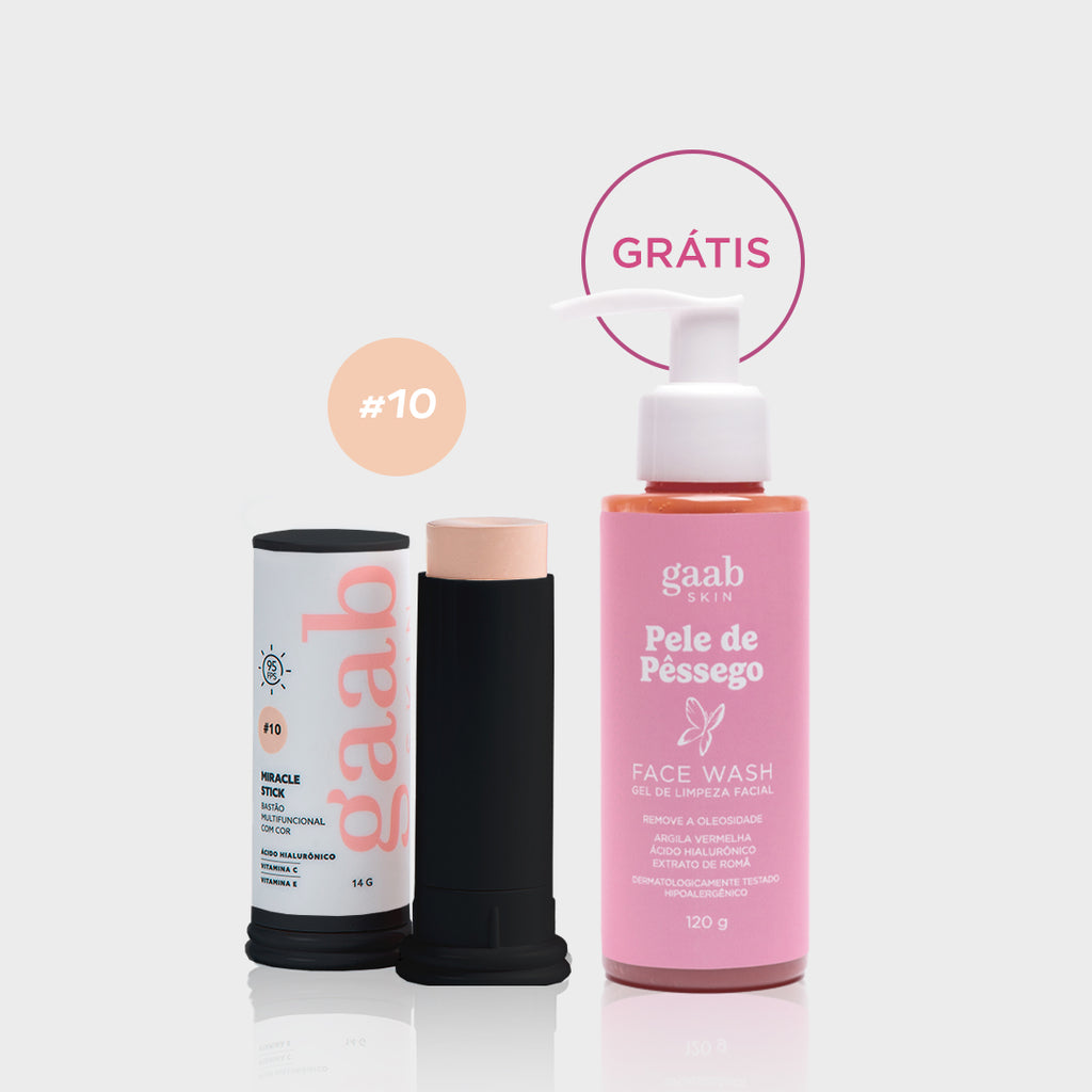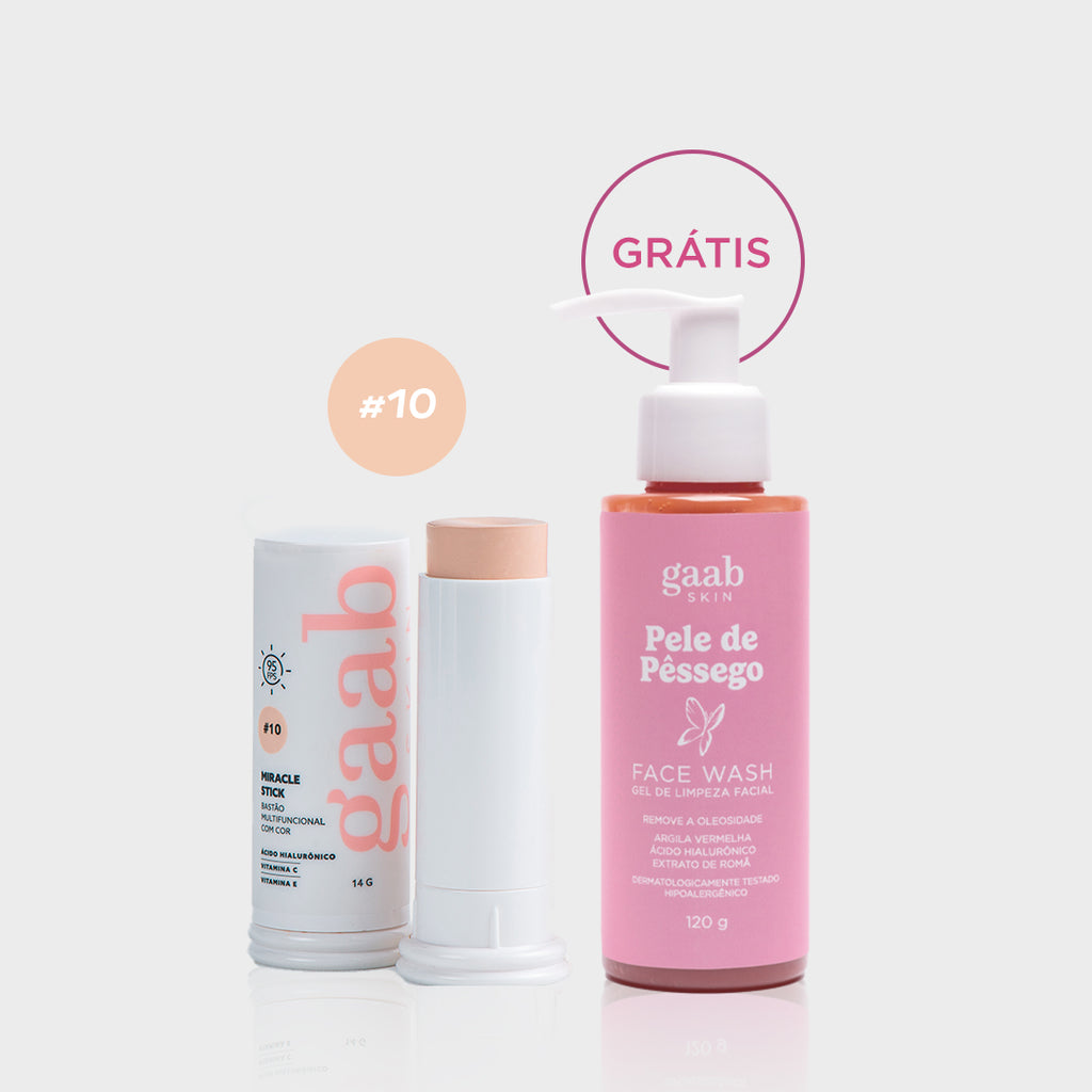 Experimente uma pele radiante perfeitamente protegida e hidratada com a junção do Bastão Multifuncional Miracle Stick e do Gel de Limpeza Face Wash de Gaab Skin. O gel de limpeza limpa suavemente e contém argila vermelha, um ingrediente natural que ajuda a reduzir a inflamação, acelerar a cicatrização e promover uma sensação de relaxamento, preparando sua pele para os próximos passos da sua rotina. Já o bastão conta com cobertura média, FPS 95 e FPUVA 40, possui Ácido Hialurônico, Vitamina C e E para prevenir o envelhecimento precoce e uniformizar o tom de pele.