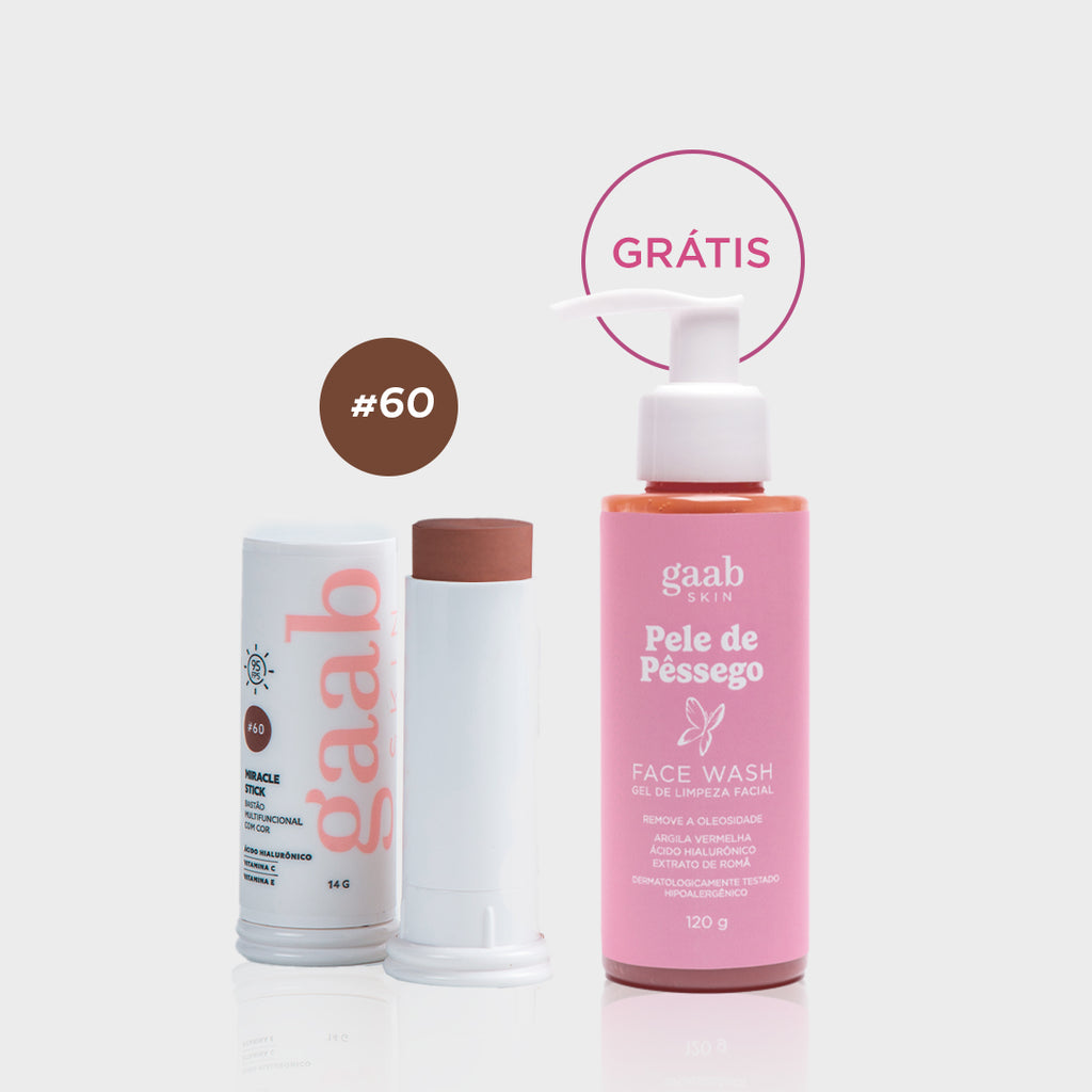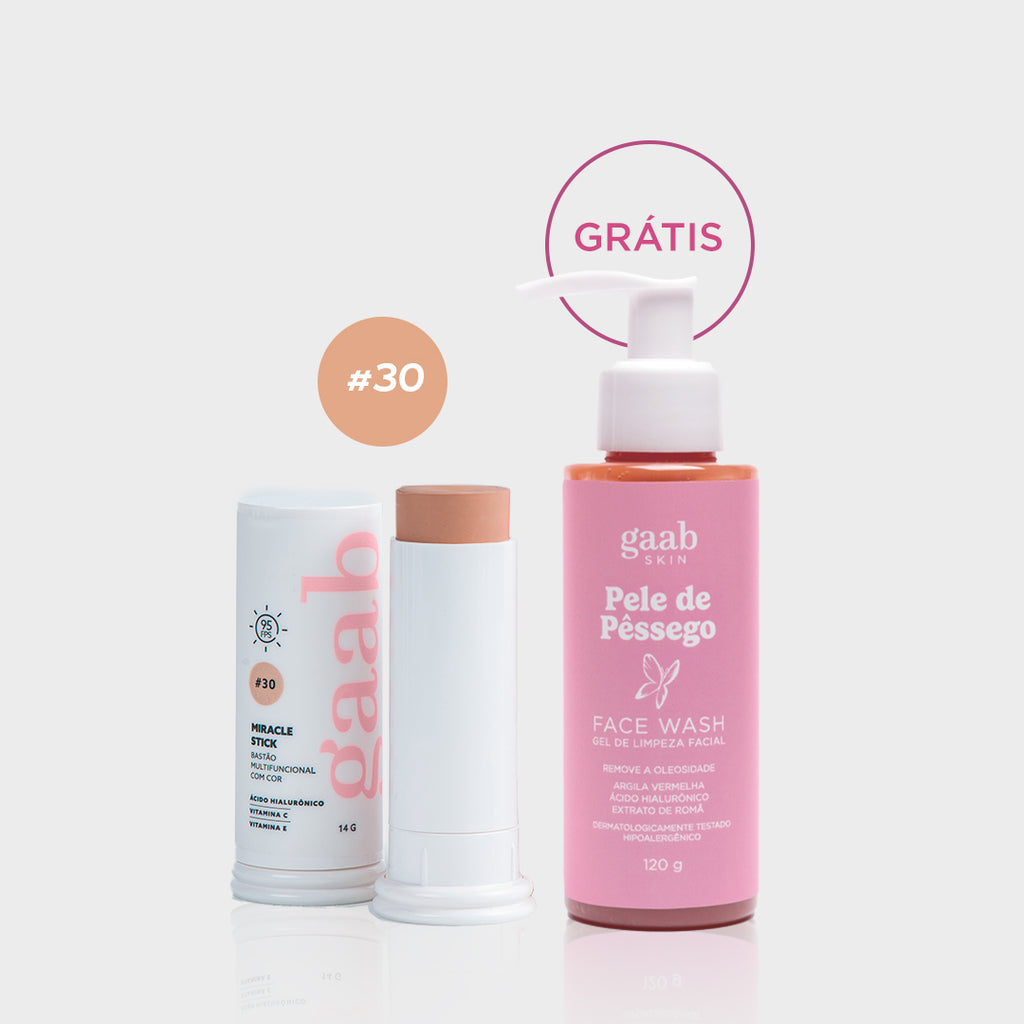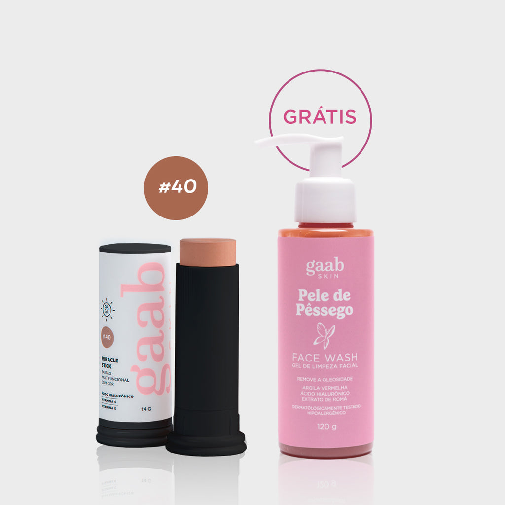 Experimente uma pele radiante perfeitamente protegida e hidratada com a junção do Bastão Multifuncional Miracle Stick e do Gel de Limpeza Face Wash de Gaab Skin. O gel de limpeza limpa suavemente e contém argila vermelha, um ingrediente natural que ajuda a reduzir a inflamação, acelerar a cicatrização e promover uma sensação de relaxamento, preparando sua pele para os próximos passos da sua rotina. Já o bastão conta com cobertura média, FPS 95 e FPUVA 40, possui Ácido Hialurônico, Vitamina C e E para prevenir o envelhecimento precoce e uniformizar o tom de pele.